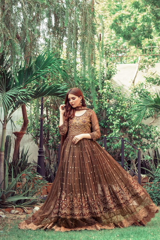 NB-2983 Mint Embroidered Maisori Anarkali 3pc Stitched