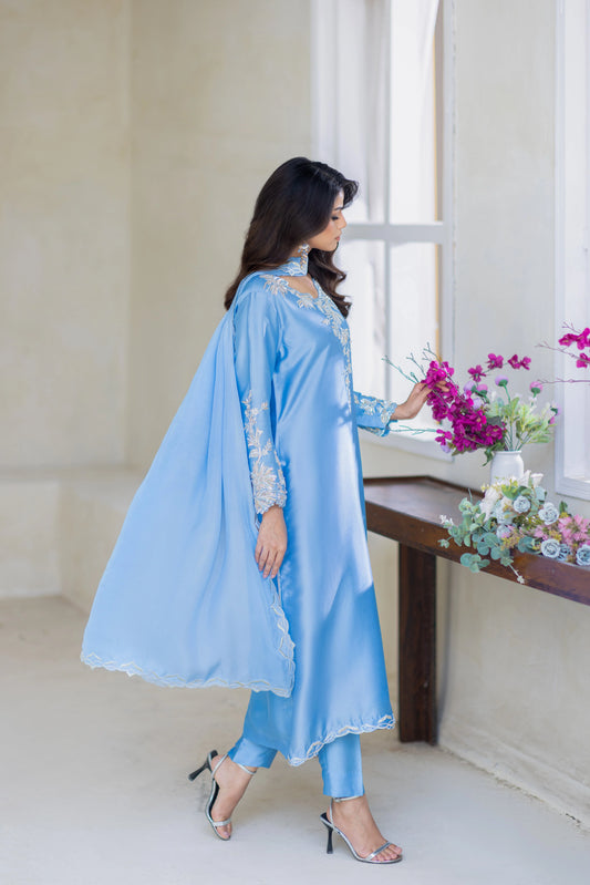 NB-2794 Blue Embroidered Maisori | Stitched Dress