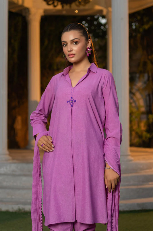 F-153 Pure Karandi Hand Embroidered shirt with pants and Chiffon Chunnari