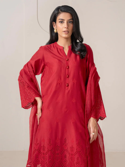 3 Piece Lawn Suit-Embroidered Red (Pret)