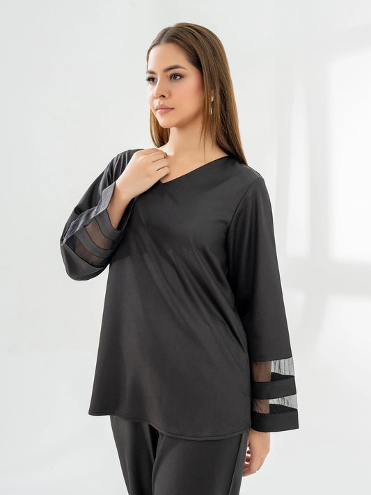 Black Dyed Grip Co-Ord Set with Wide-Leg Trousers | Stitched
