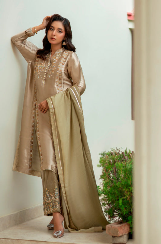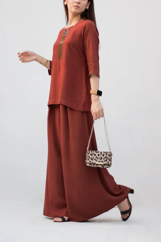 MSP-004-Mahreen | Brown Solid Linen Dress - 2 Piece