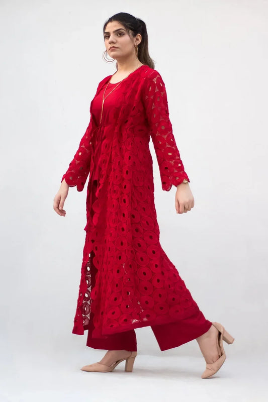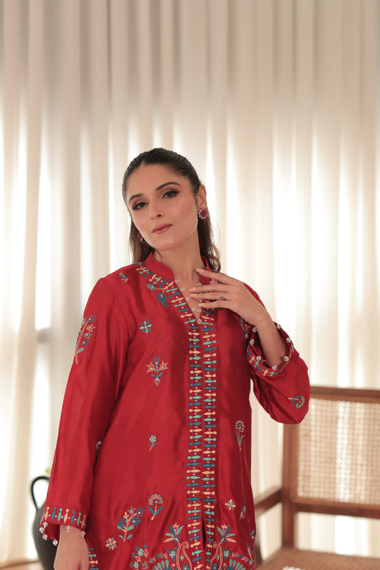 MSP 301 - Red Farshi Silk 3-Piece Outfit