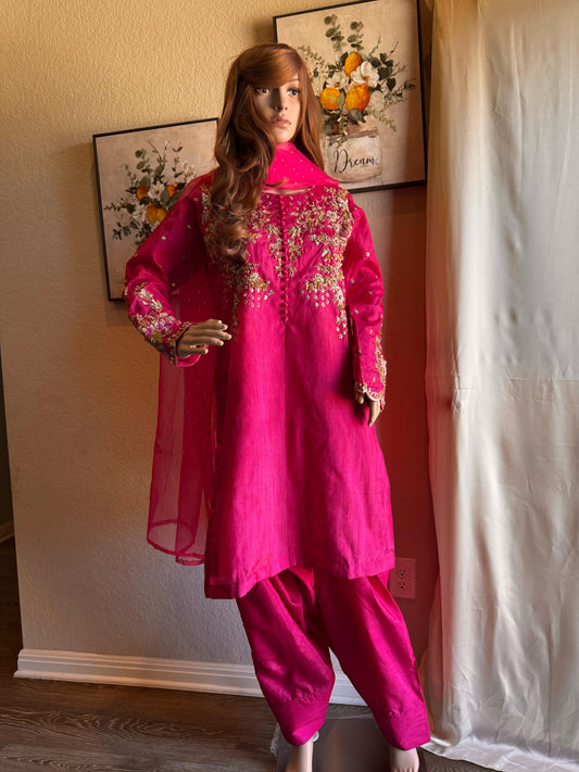 3 PIECE - EMBROIDERED RAW SILK SUIT