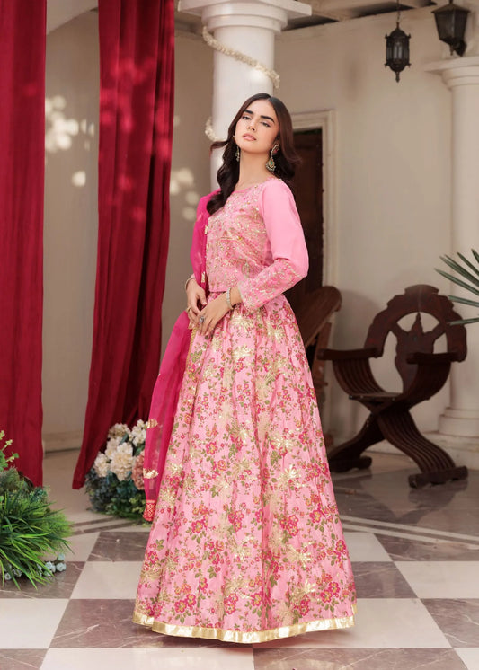 3 Piece NF-6403 Maroon Mehndi Stitched Lahanga Choli