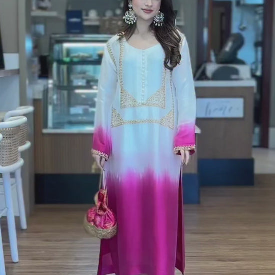 The Double Tone 2-Pcs Set features a silk dress designed for comfort and elegance. This ready-to-wear attire offers customization options to ensure a perfect fit. Its dual-tone design enhances visual appeal, making it suitable for various occasions. The silk fabric provides breathability and a luxurious feel against the skin.