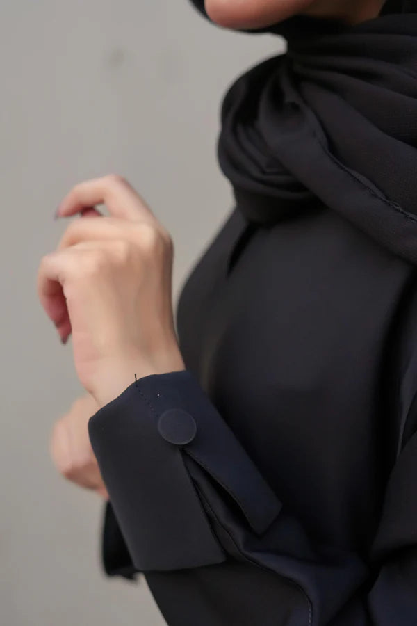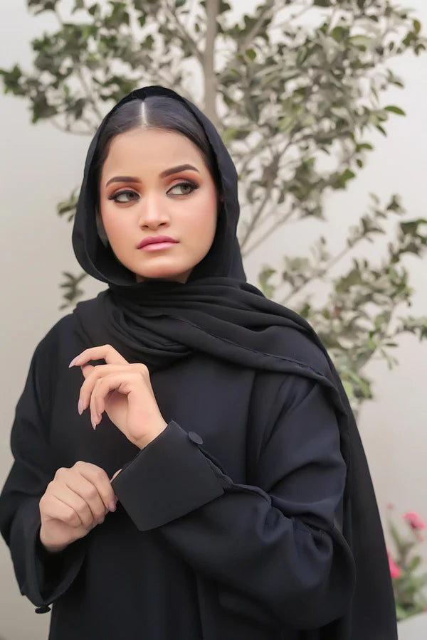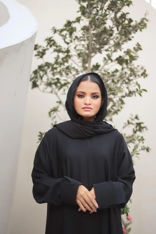 This simple maxi style abaya is designed for versatility and practicality. With side zip pockets for convenience, cuff sleeves for a polished look, and a round neckline for modesty, it offers both comfort and style. Suitable for day-to-day wear, office attire, as well as for Hajj and Umrah,