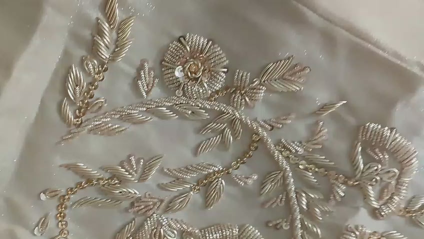 Experience luxury and elegance with our Golden Formal Dress. Made from 100% pure silk, this dress features intricate handwork on the shirt and comes with a handmade dupatta. It is ready to wear and will be delivered to you in just 5-6 weeks. Make a statement at any formal event with this stunning dress.