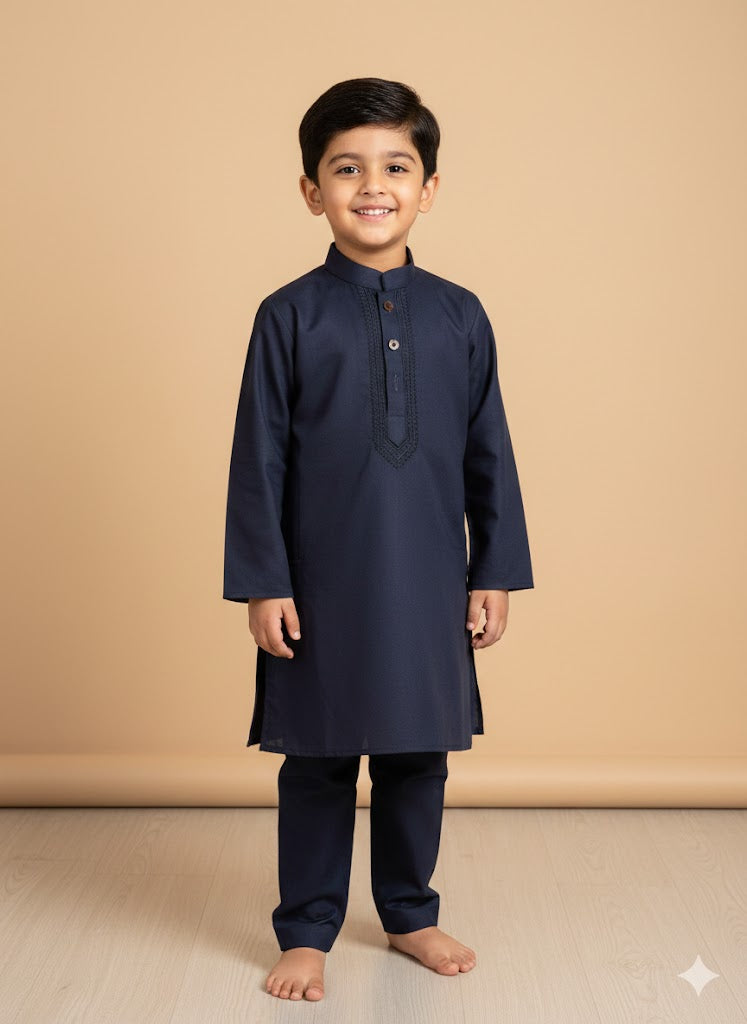 Navy embroidered kurta trouser boys