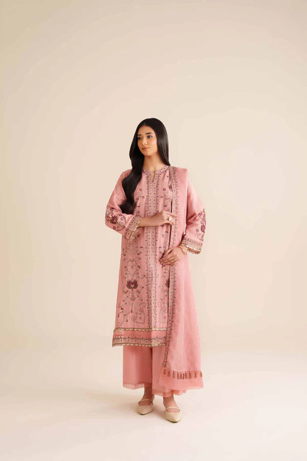 Embroidered Shirt With Dupatta & Trousers