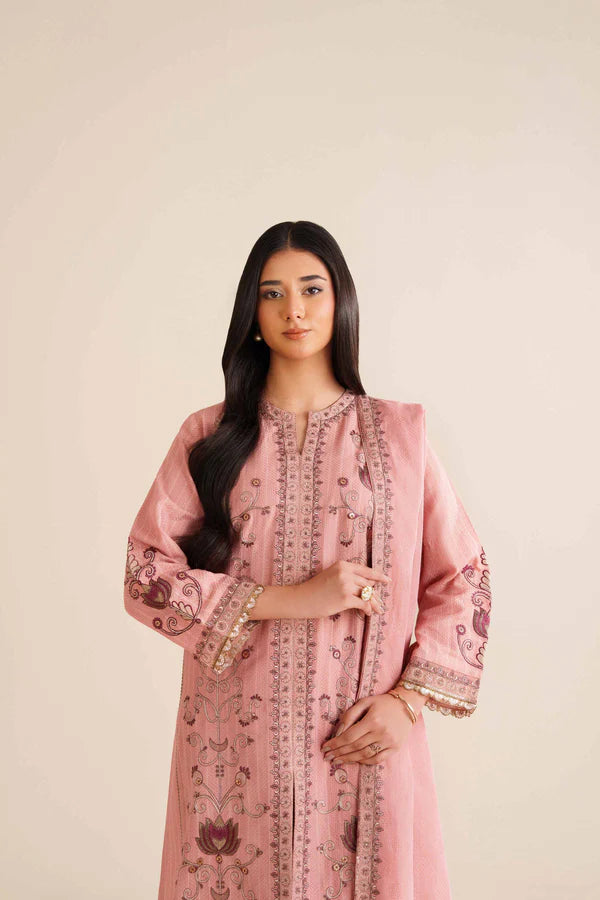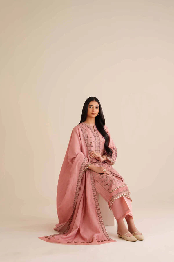 Refresh your festive wardrobe with this embroidered three-piece suit from the latest Pret Winter Collection, designed for lasting charm.