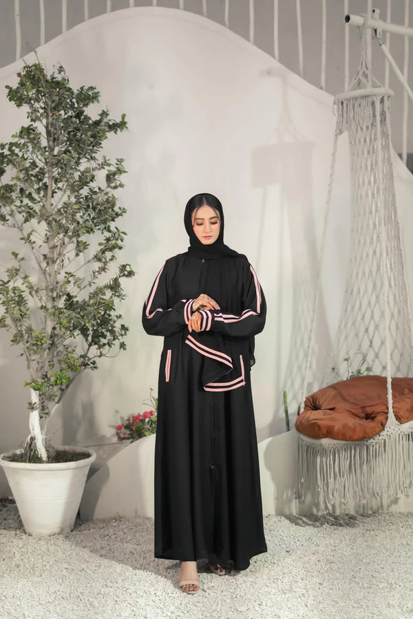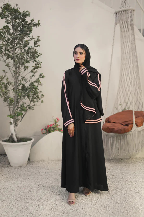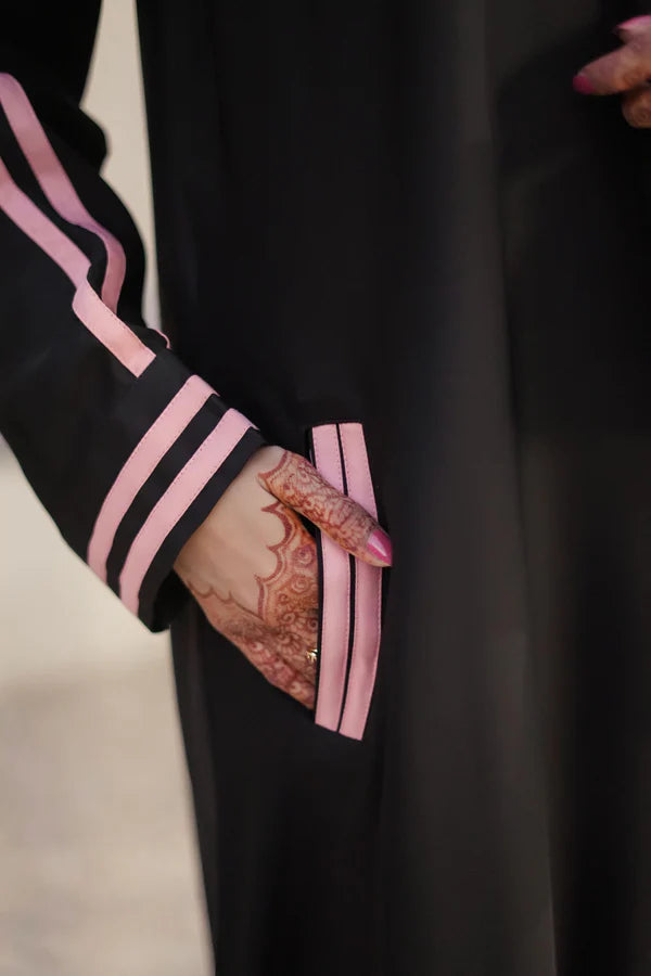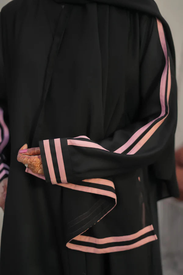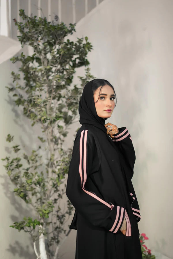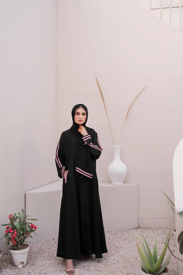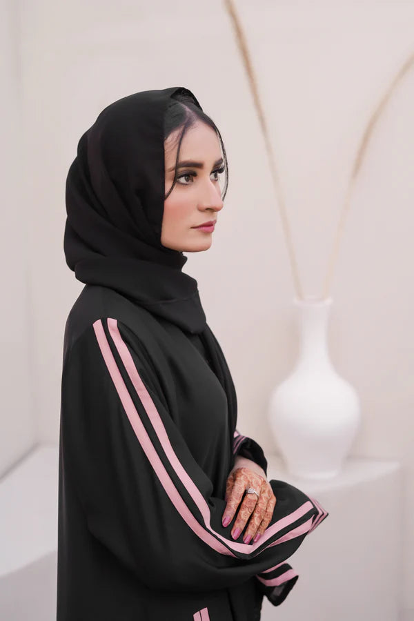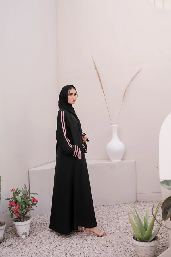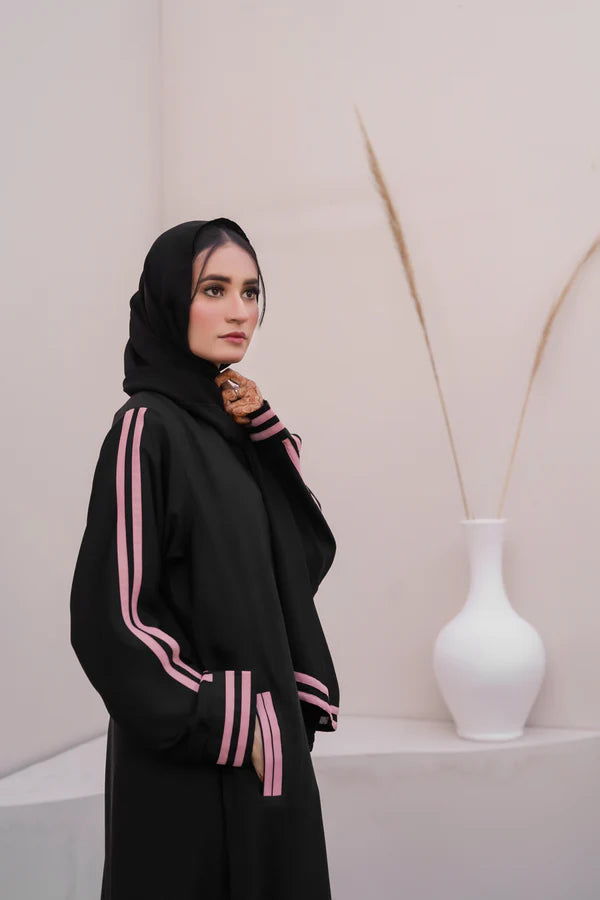 Sporty and relaxed in fit, it is your ideal staple for your active routine. Add some creative styling to your look with this trendy abaya. Complemented by pink tone contrast stripe which makes the Abaya the perfect casual staple for your wardrobe.
